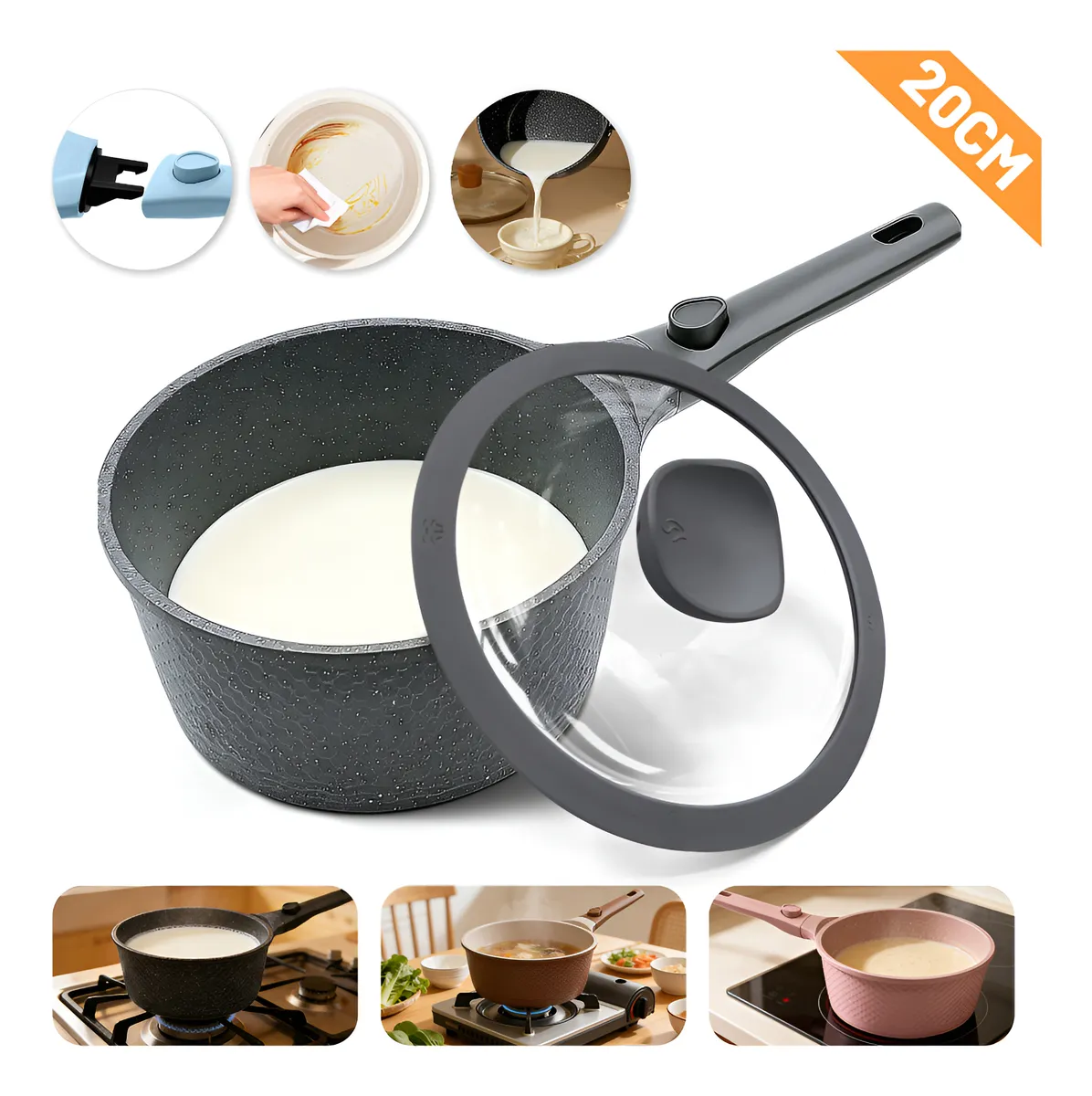 Small 20cm Saucepan with Lid for Domestic Use