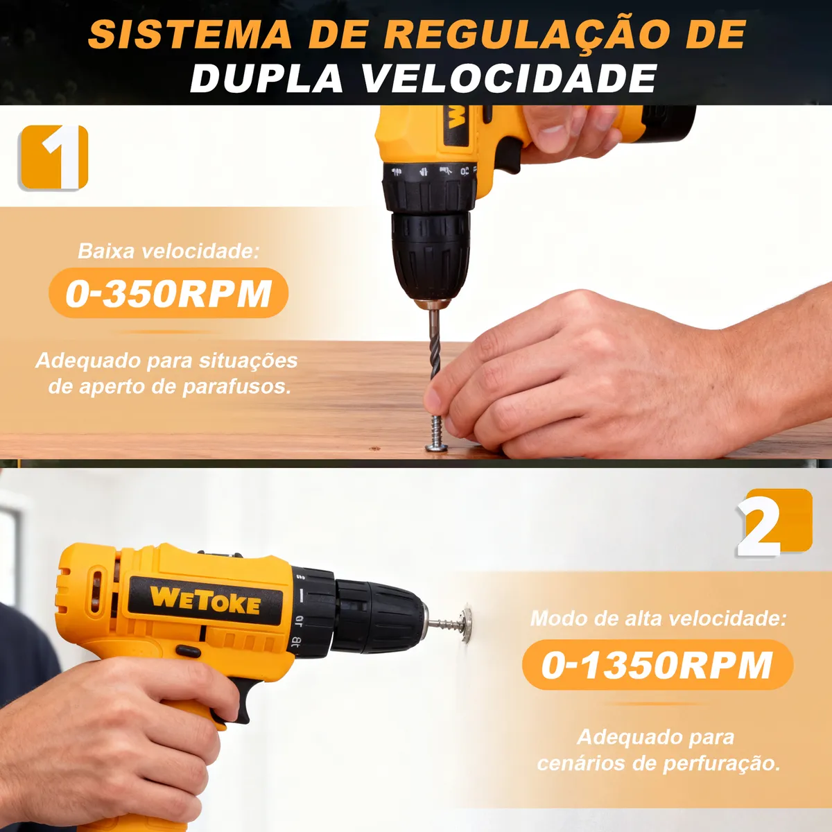 With 2 speeds (0–350 / 0–1350 RPM) and 18+1 torque levels, you can adjust the ideal force for each material, avoiding damage and ensuring a perfect finish.
