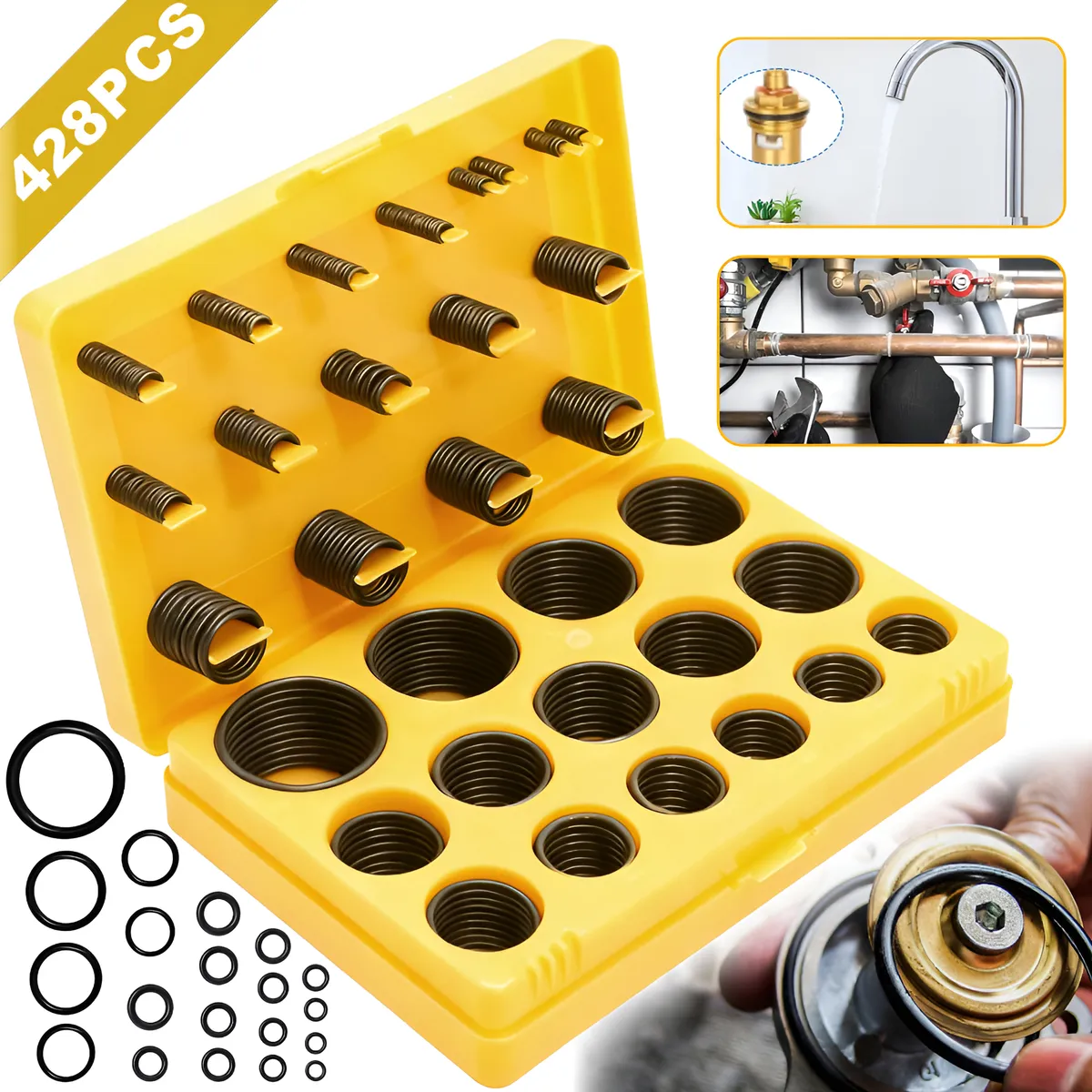 WeToke 428-Piece Nitrile Rubber O-Ring Sealing Kit, Yellow