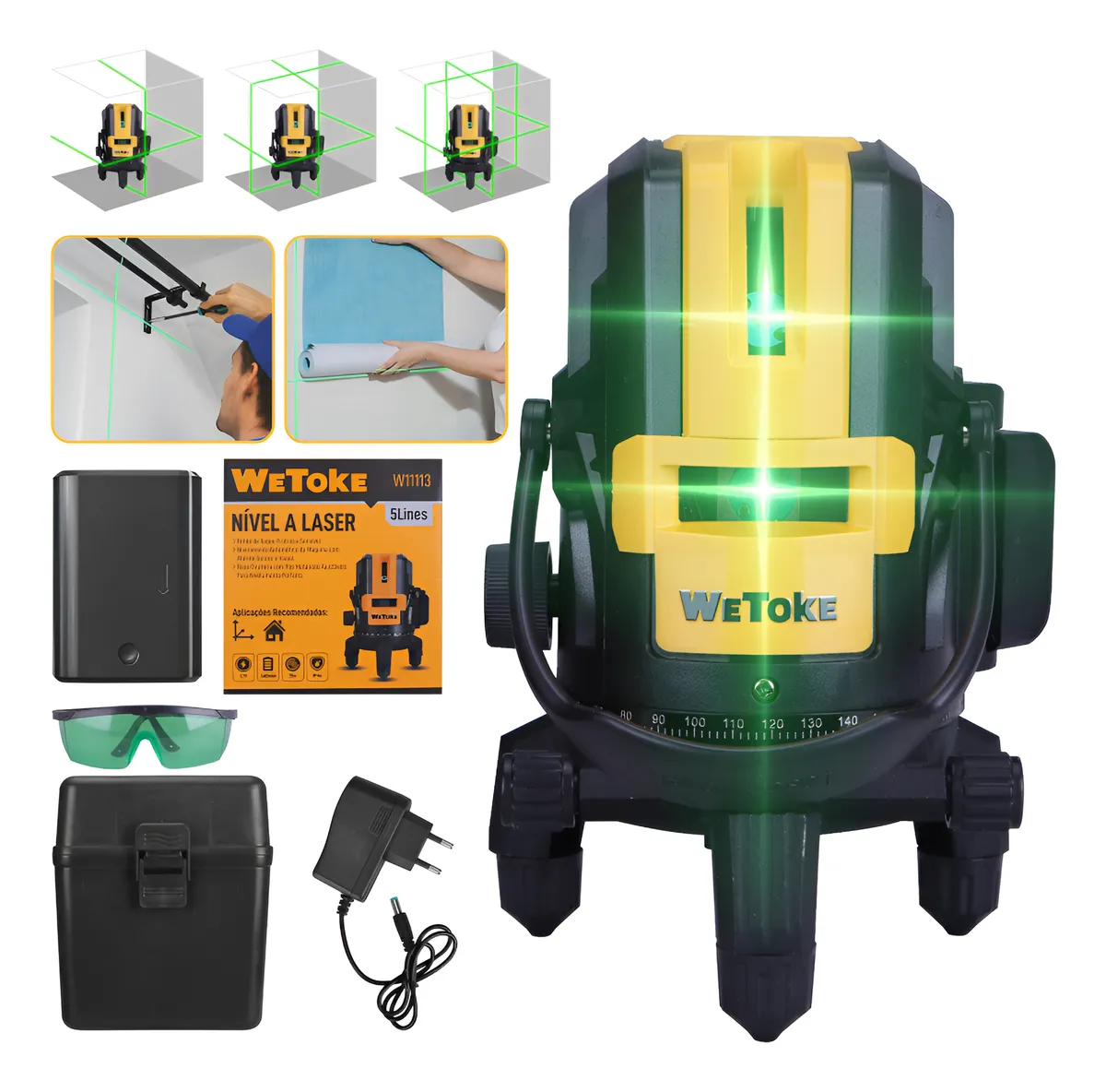 Wetoke 5-Line Laser Level with Fabric Case, Automatic Leveling